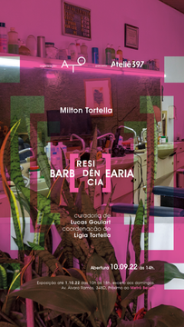 design gráfico, key visual e rede social da intervenção artística Barbearia Residência, 2022, de Milton Tortella. Curadoria: Lucas Goulart e coordenação de Lígia Tortella. Fotografias da barbearia: Larissa Infante, trabalhos: Augusto From.
